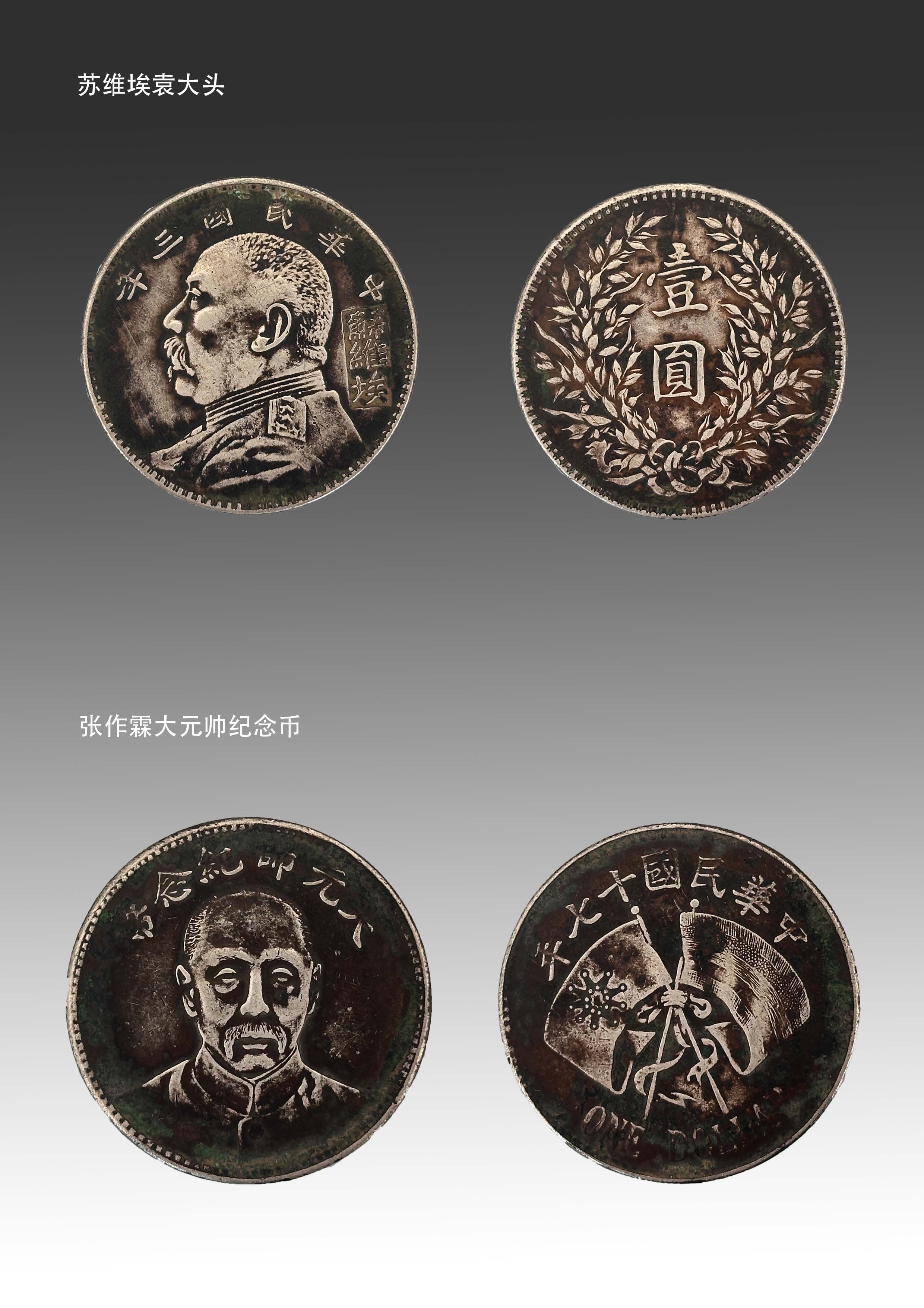 民国钱币一组(苏维埃袁大头,张作霖大元帅纪念币)