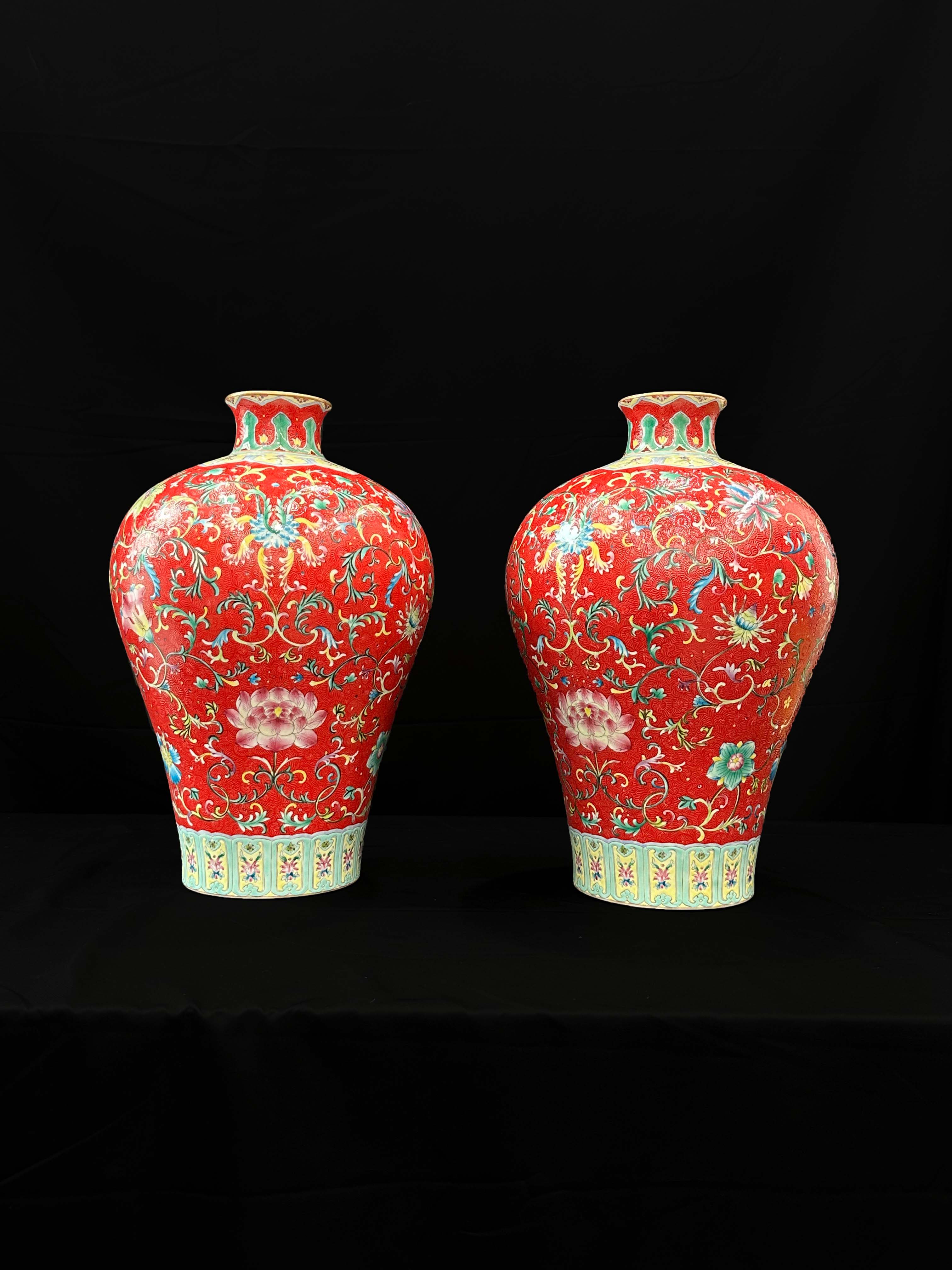 珐琅彩轧道梅瓶一对