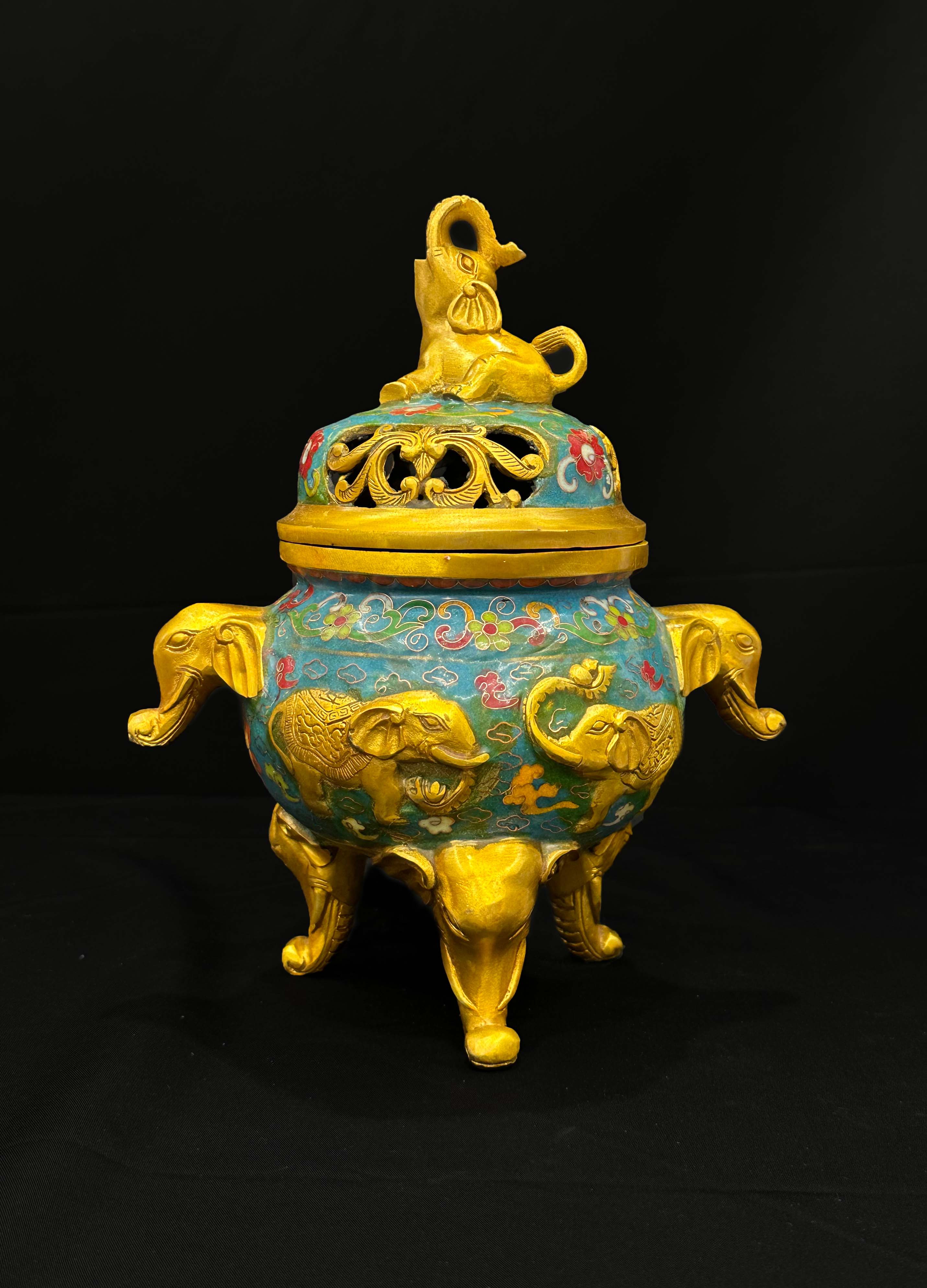 景泰蓝铜胎鎏金掐丝珐琅彩大象香薰炉