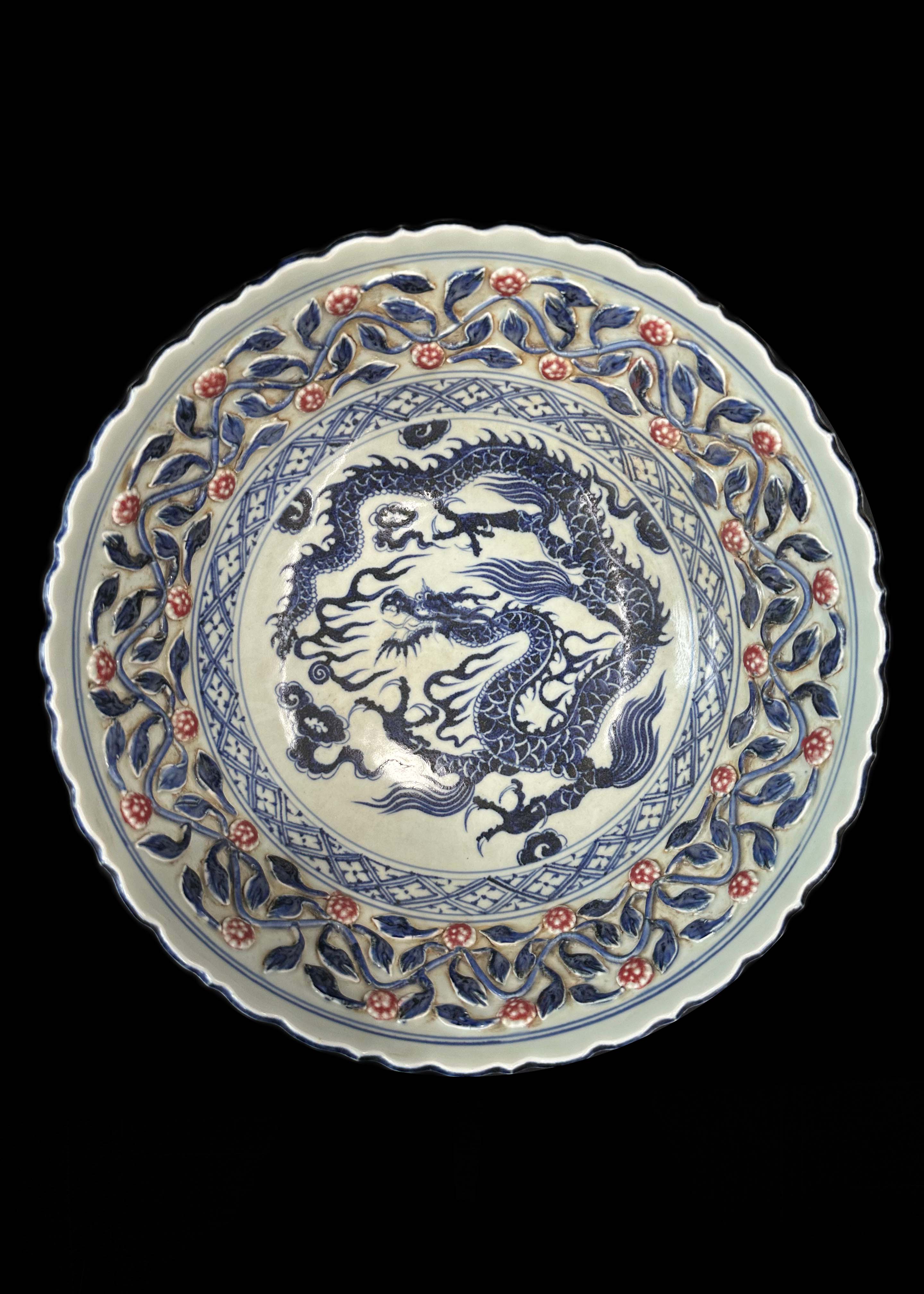 青花堆塑釉里红缠枝碗