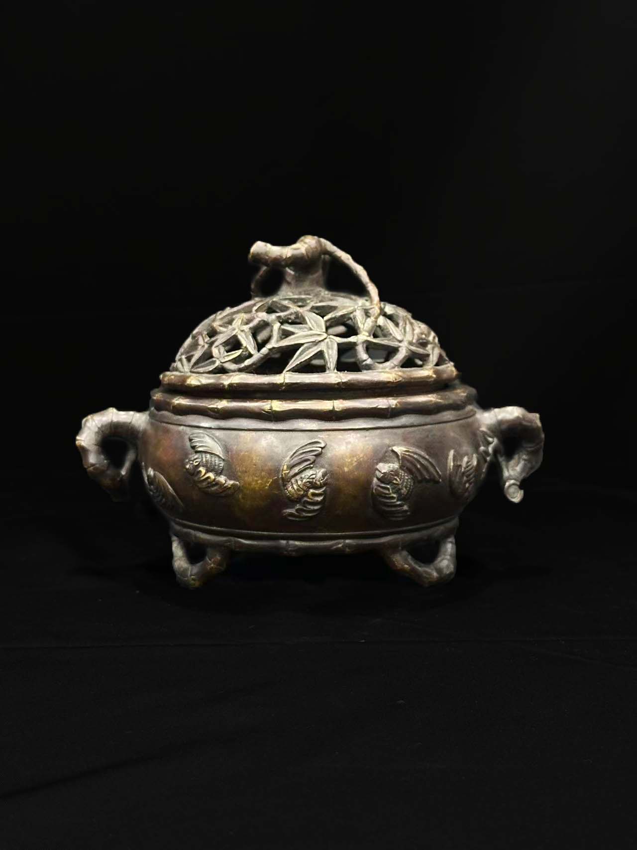 铜制竹节纹熏香炉