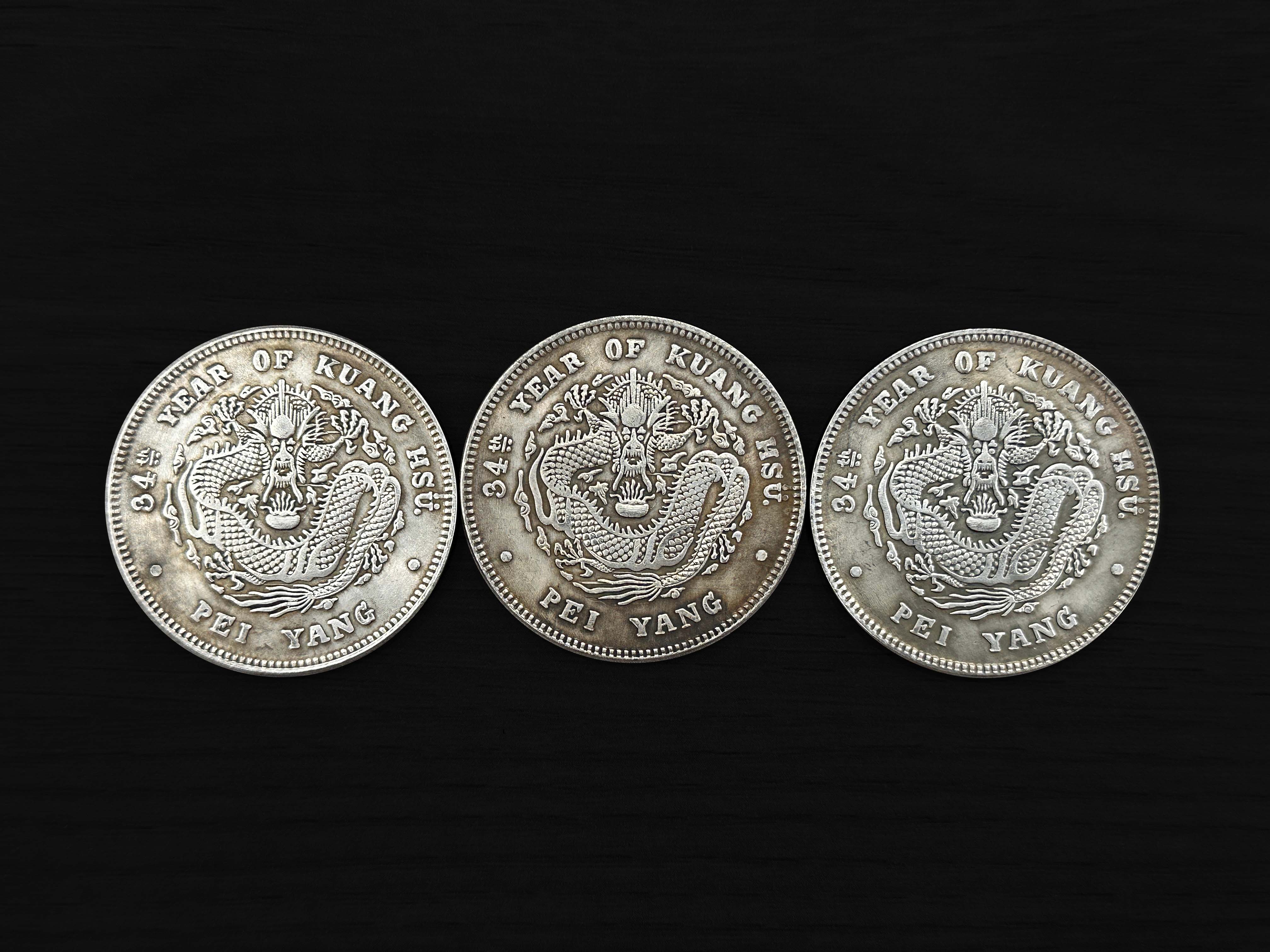 光绪 22 年至 34 年(1896–1908 年),图中三枚分别对应不同年份