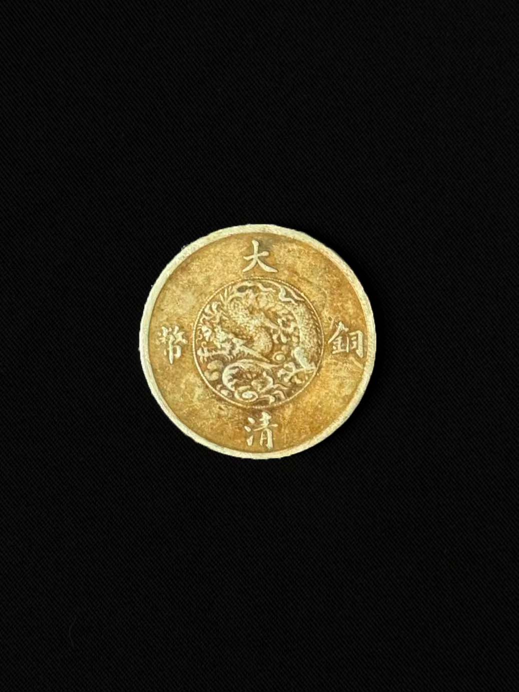 历史背景宣统三年是清代最后一个年号,这枚铜元也是清代官方铸造的最后一批铜元之一,见证了清朝的覆灭与近代货币体系的转型。正面 中央为 “大清铜币” 四字,环绕蟠龙纹,是清代铜元的典型设计。背面 中央为 “十文” 面值,外环 “宣统三年” 年号与 “百枚换银币一圆” 的币值换算说明,这是宣统三年版铜元的标志性文字。