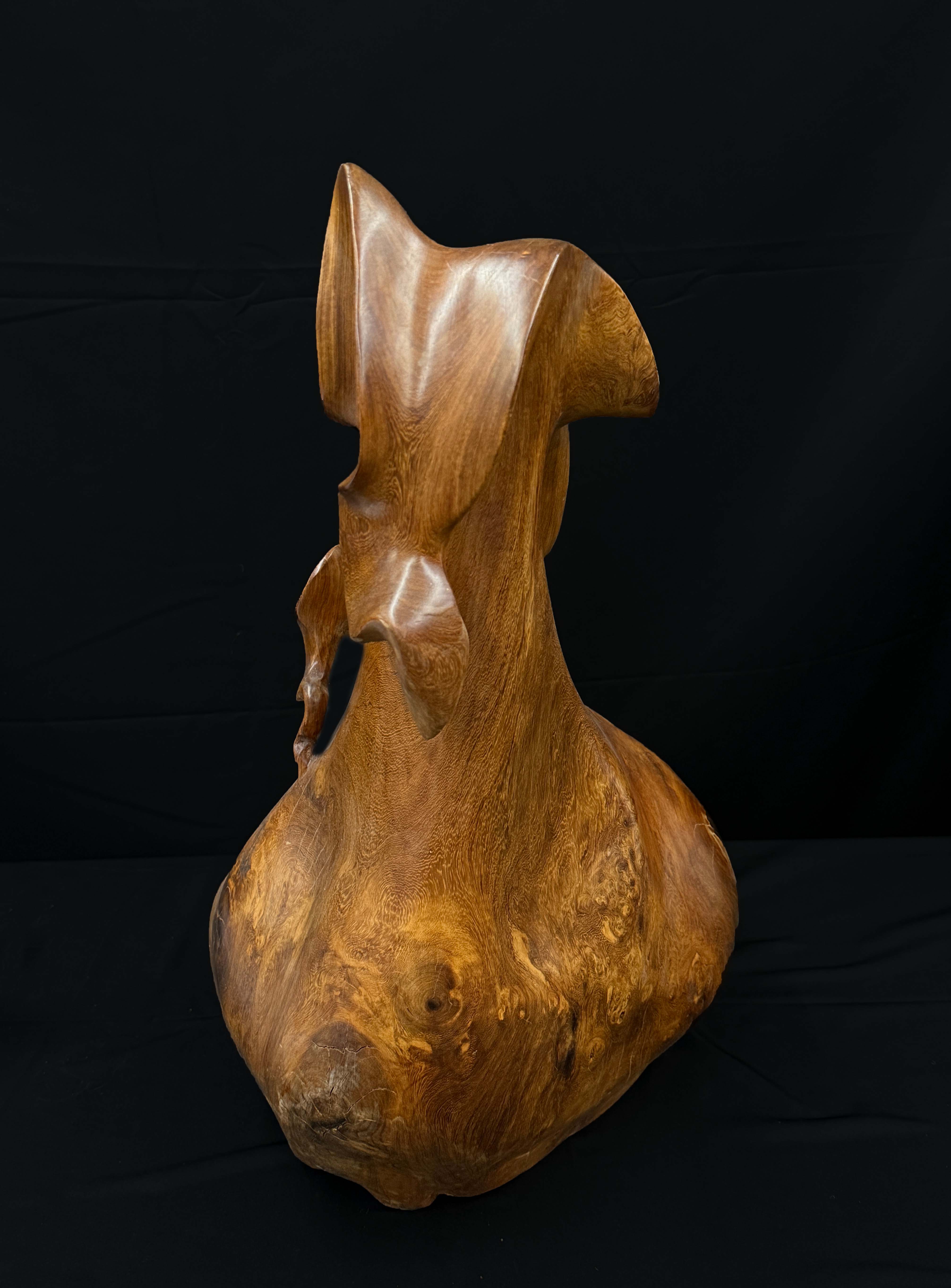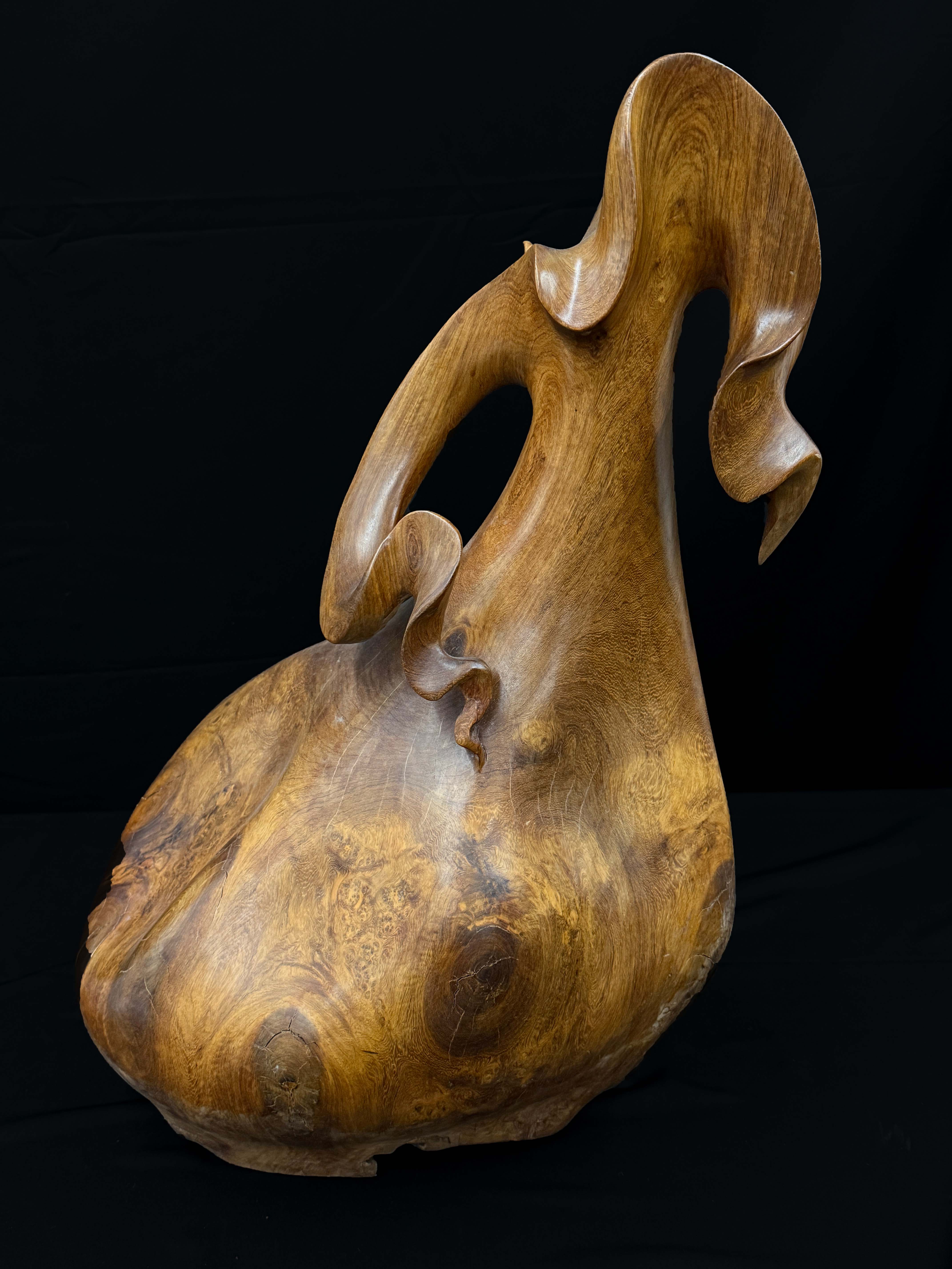 采用随形雕工艺,顺着阴沉木的天然形态雕琢成 “钱袋” 造型,既保留了阴沉木的原始质感,又通过手工塑形突出钱袋的轮廓特征,是 “因材施艺、天然与人工结合” 的传统木雕手法。