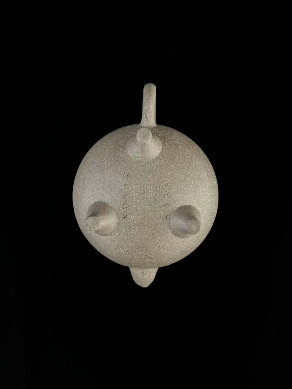 传统 “三足壶” 造型,壶身饱满圆润,三足底稳固,盖钮、壶嘴、壶把比例协调,属于经典的 “光素器” 实用壶型,泥质细腻,颗粒感均匀