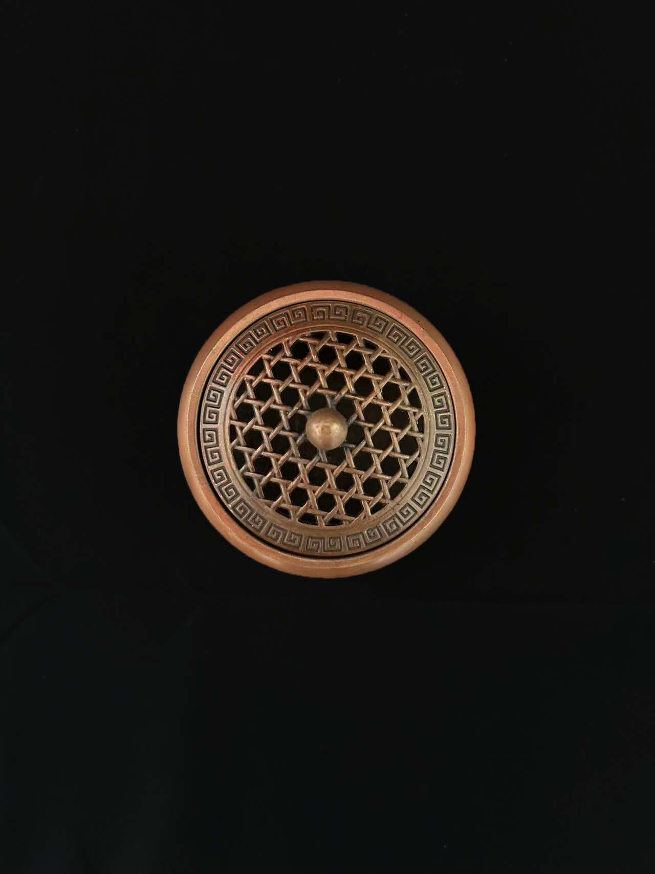 属于 “三足扁炉” 形制,炉身圆润鼓腹,搭配三只矮足,整体线条饱满流畅,符合传统熏香炉 “实用与雅致兼具” 的设计;炉盖为带镂空的圆盖,顶部设圆珠形钮,既便于开启,也让香气可从镂空处自然溢出。仅供参考 自行甄别