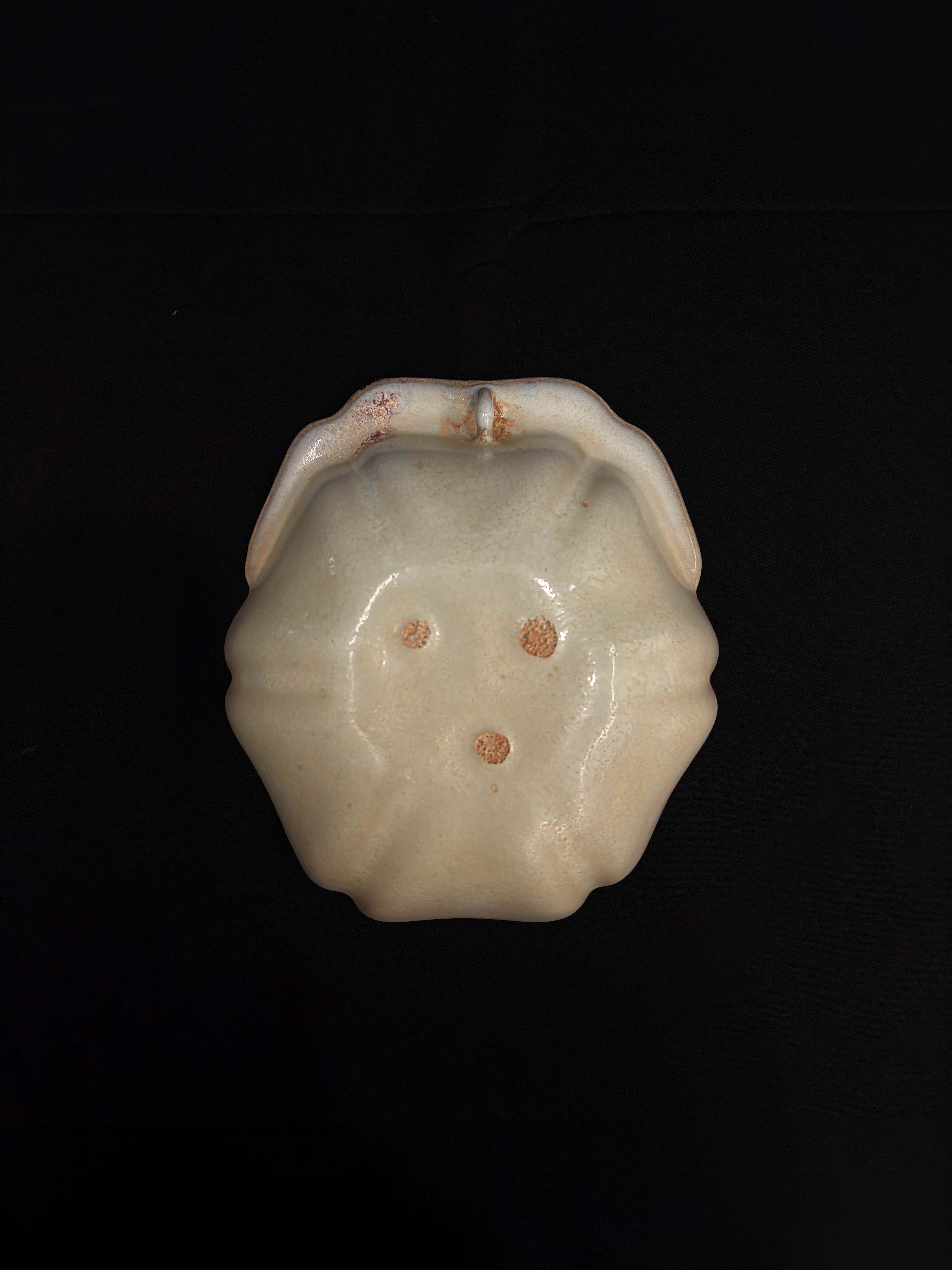 月白釉是一种以乳白色为基调,白中闪青、白中闪灰的釉色,釉质乳浊失透,釉层肥厚,如冰似玉,光泽柔和,酷似深秋的一弦皓月,给人温润、恬静的感觉。而紫斑则是在月白釉的基础上,因窑变产生的紫红色斑块,这些斑块大小不一、形状各异,为器物增添了独特的艺术效果。仅供参考 自行甄别