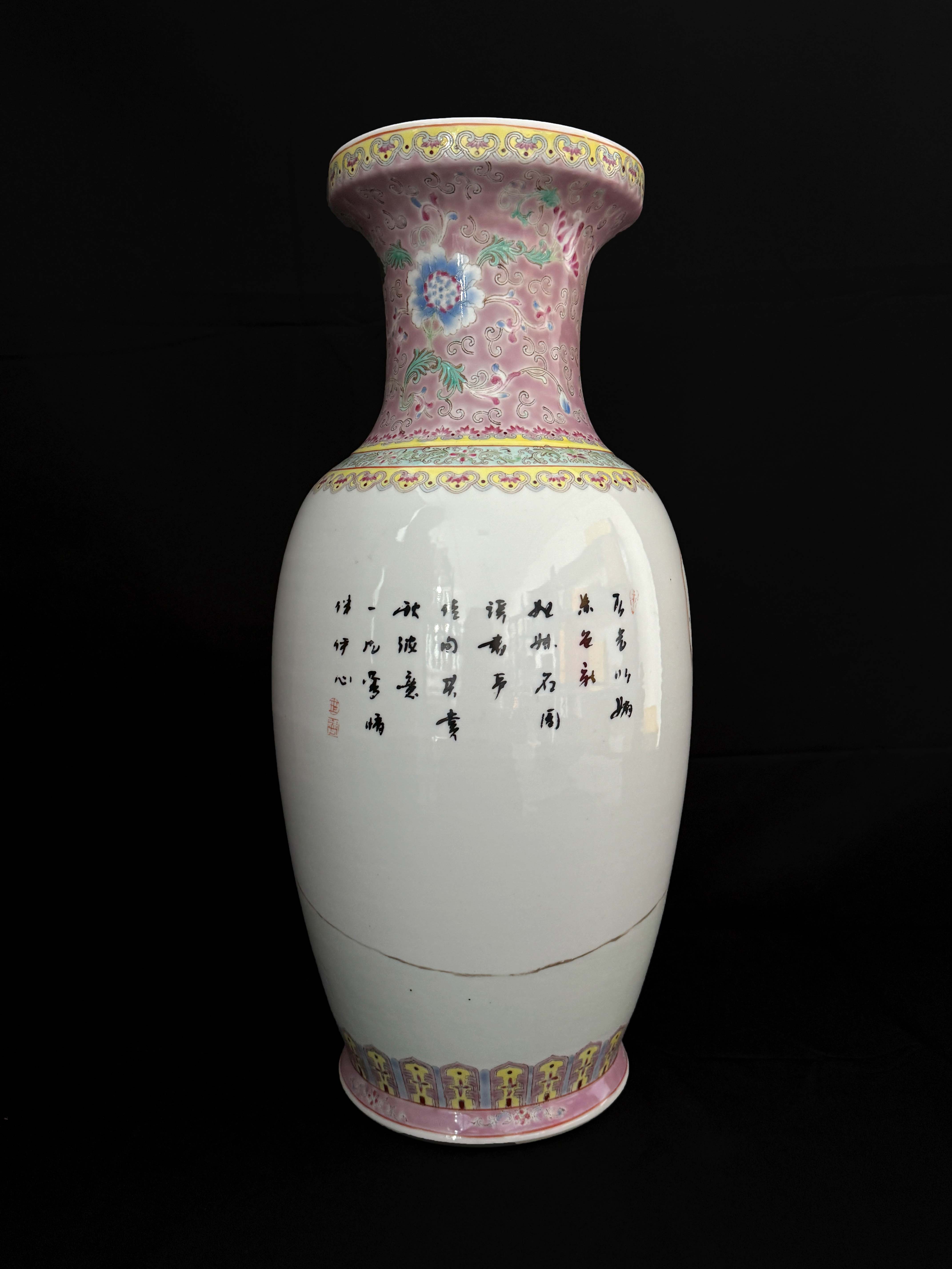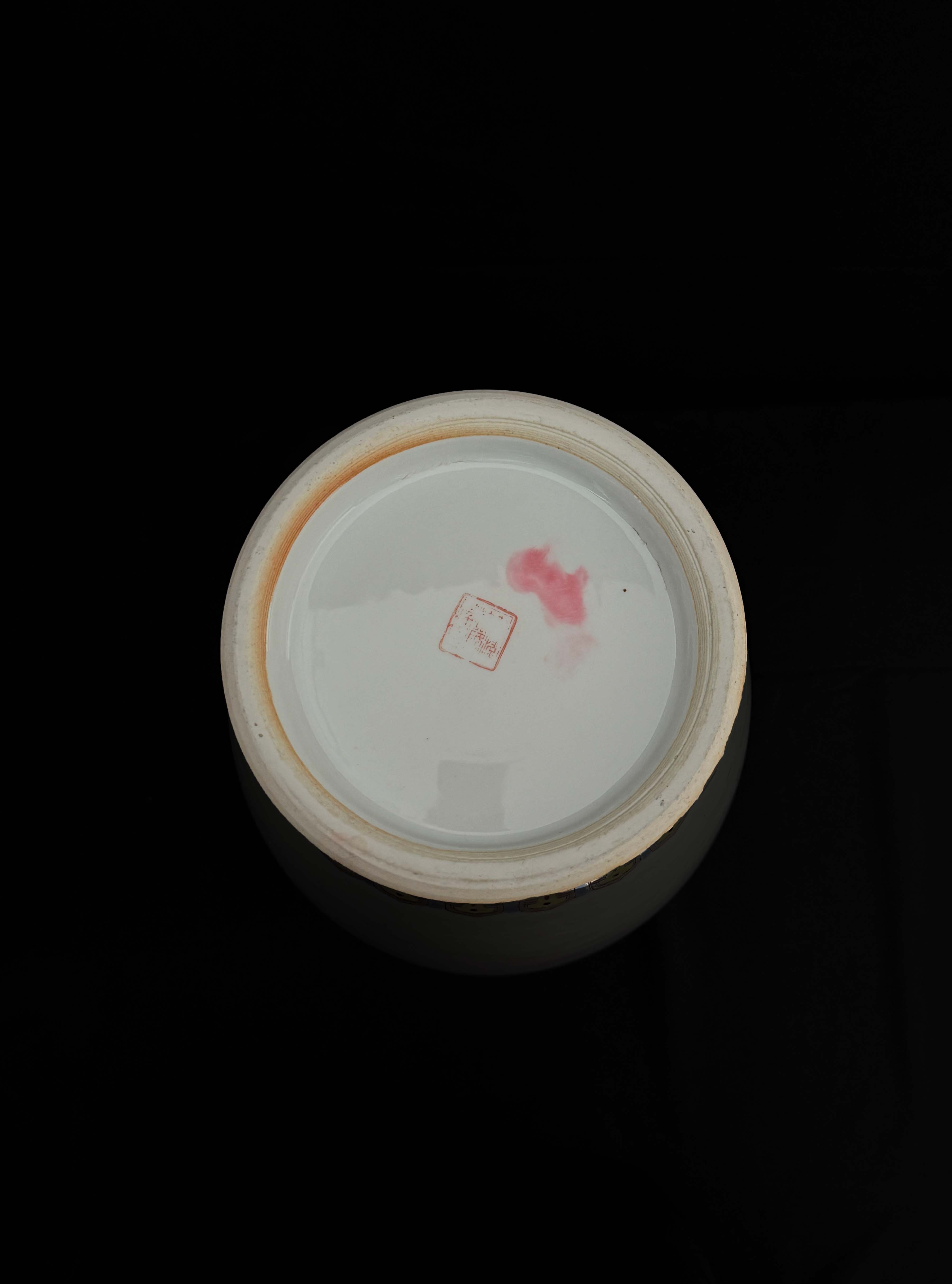“轧道粉彩” 工艺,即细密的卷草纹地 + 粉彩花卉,配色以粉红、翠绿为主,装饰繁密华丽;