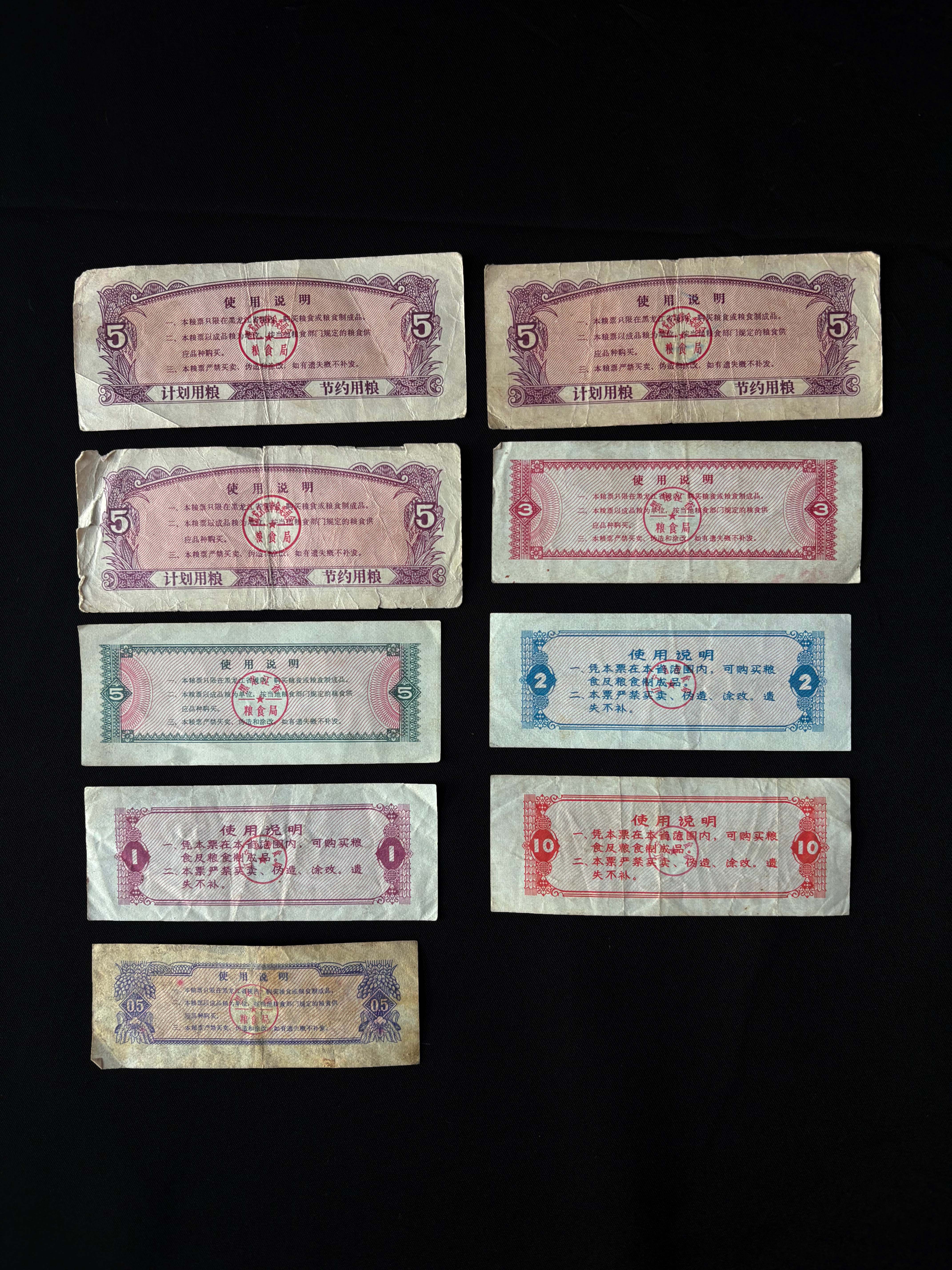 两省均从1950年代末开始发行地方粮票,作为粮油定量供应的法定凭证,直至1993年全国粮票制度取消。辽宁因工业重镇属性,粮票设计侧重工业、基建题材;黑龙江作为农业大省,票面多体现农机、农垦、粮食生产场景,是东北经济结构的时代缩影。