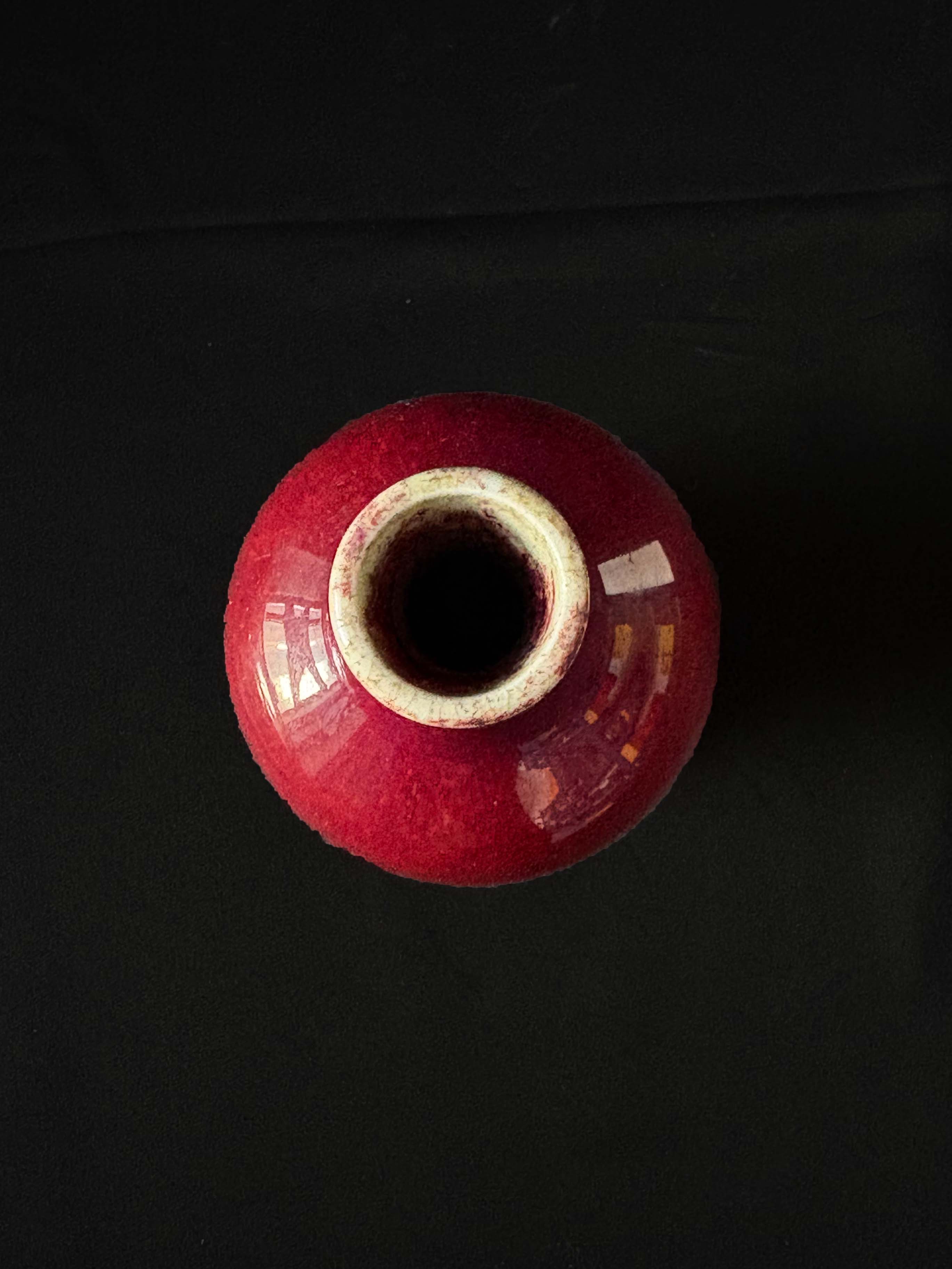 豇豆红釉色自然,胎质细腻坚致。豇豆红釉呈色淡雅,含自然“绿苔点”,俗称“美人醉”,口沿因釉薄露白胎,称“灯草边”。仅供参考 自行甄别