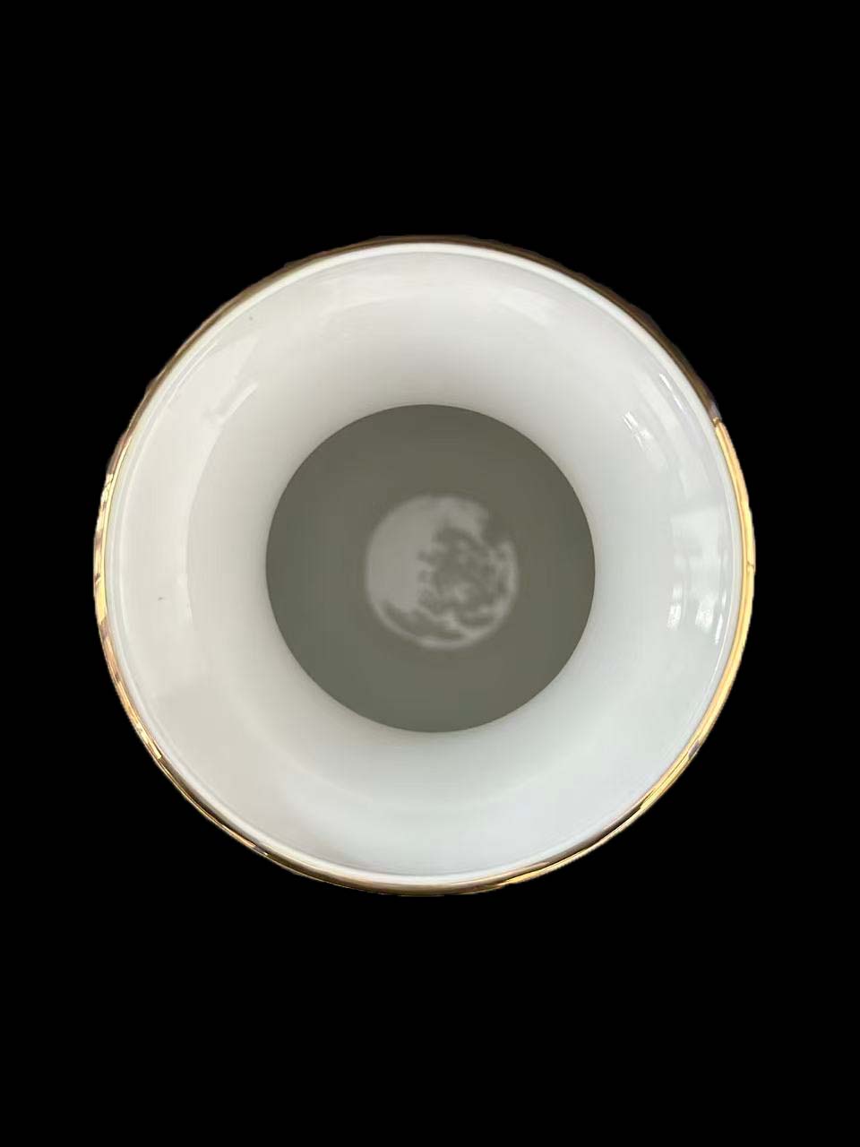 山水画面层次丰富,色彩清雅,既体现景德镇陶瓷的传统工艺,又结合红色题材的时代特征。