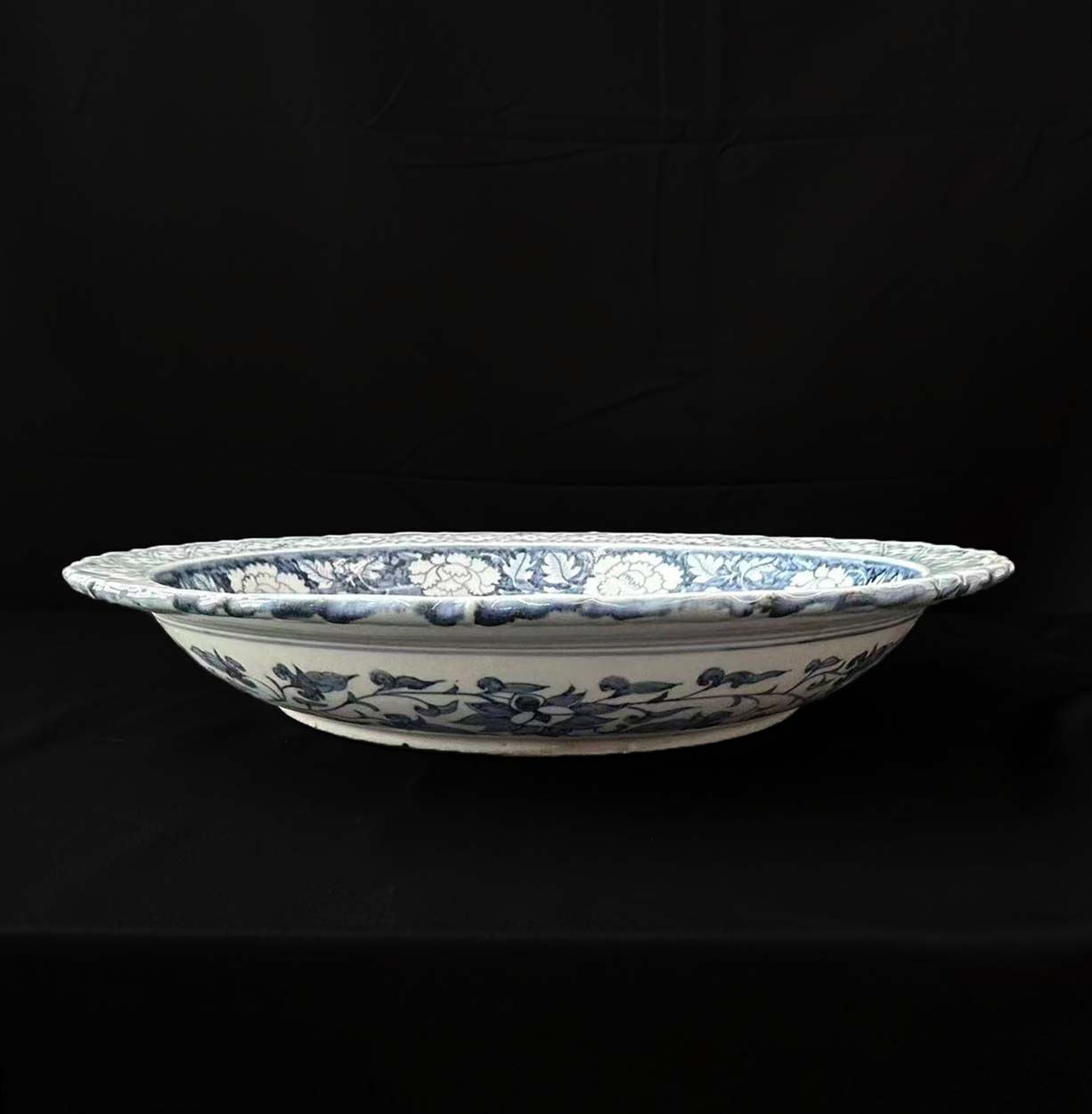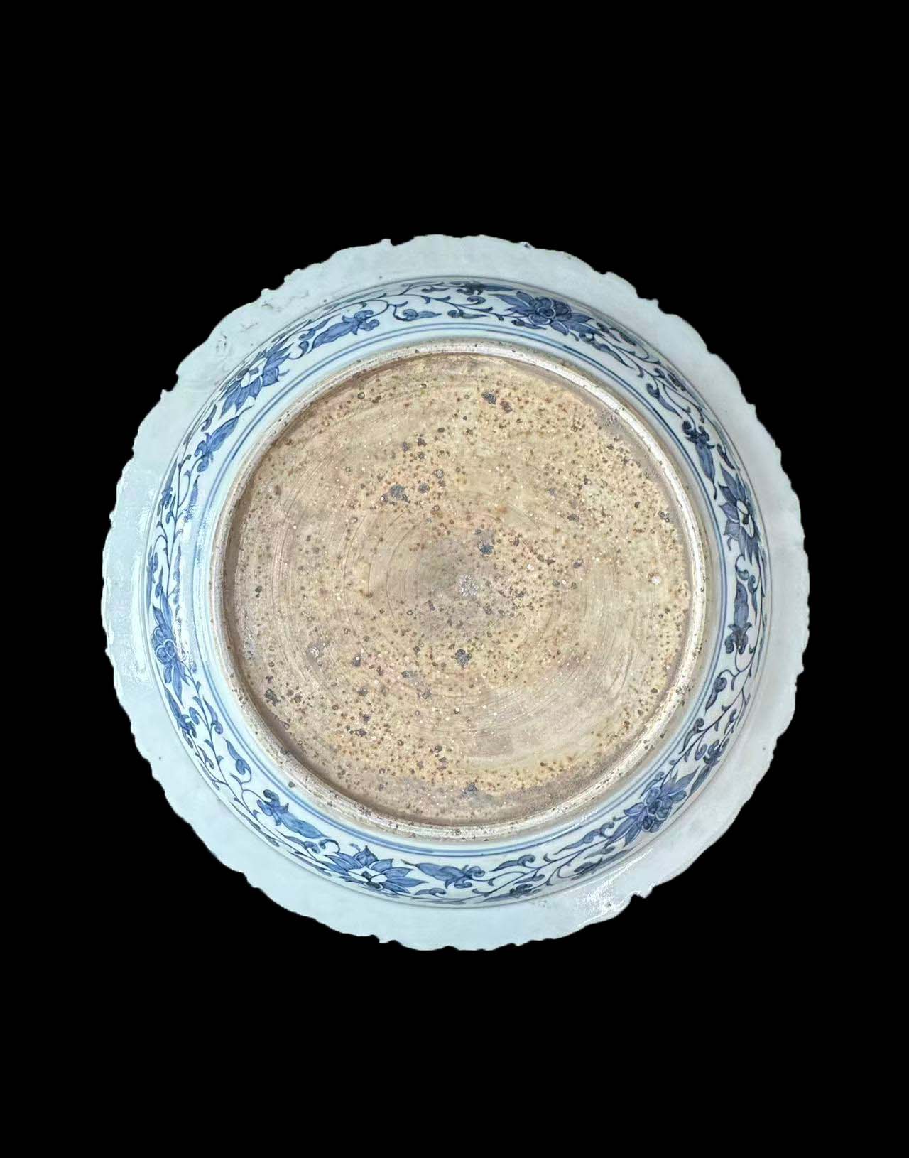 造型,盘口呈花瓣状,盘身浅坦、弧度平缓,胎体厚重,符合元代瓷器 “粗犷大气” 的风格。