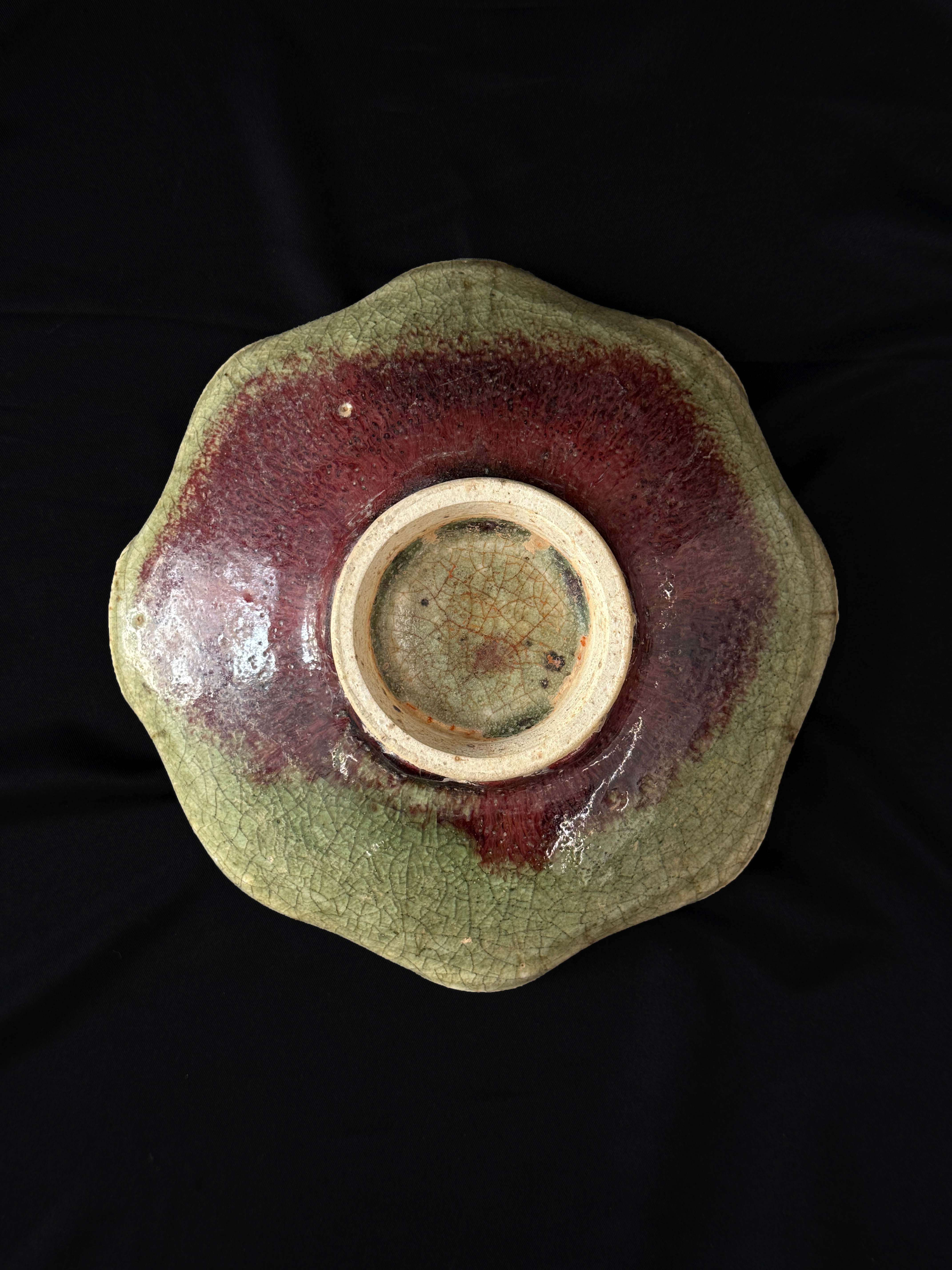 釉面开片自然流畅,紫斑窑变层次丰富,莲瓣造型的弧度与釉色的温润完美贴合,烛孔的规整设计兼具功能性与装饰性,是宋代 “实用与审美并重” 的典范。仅供参考 自行甄别