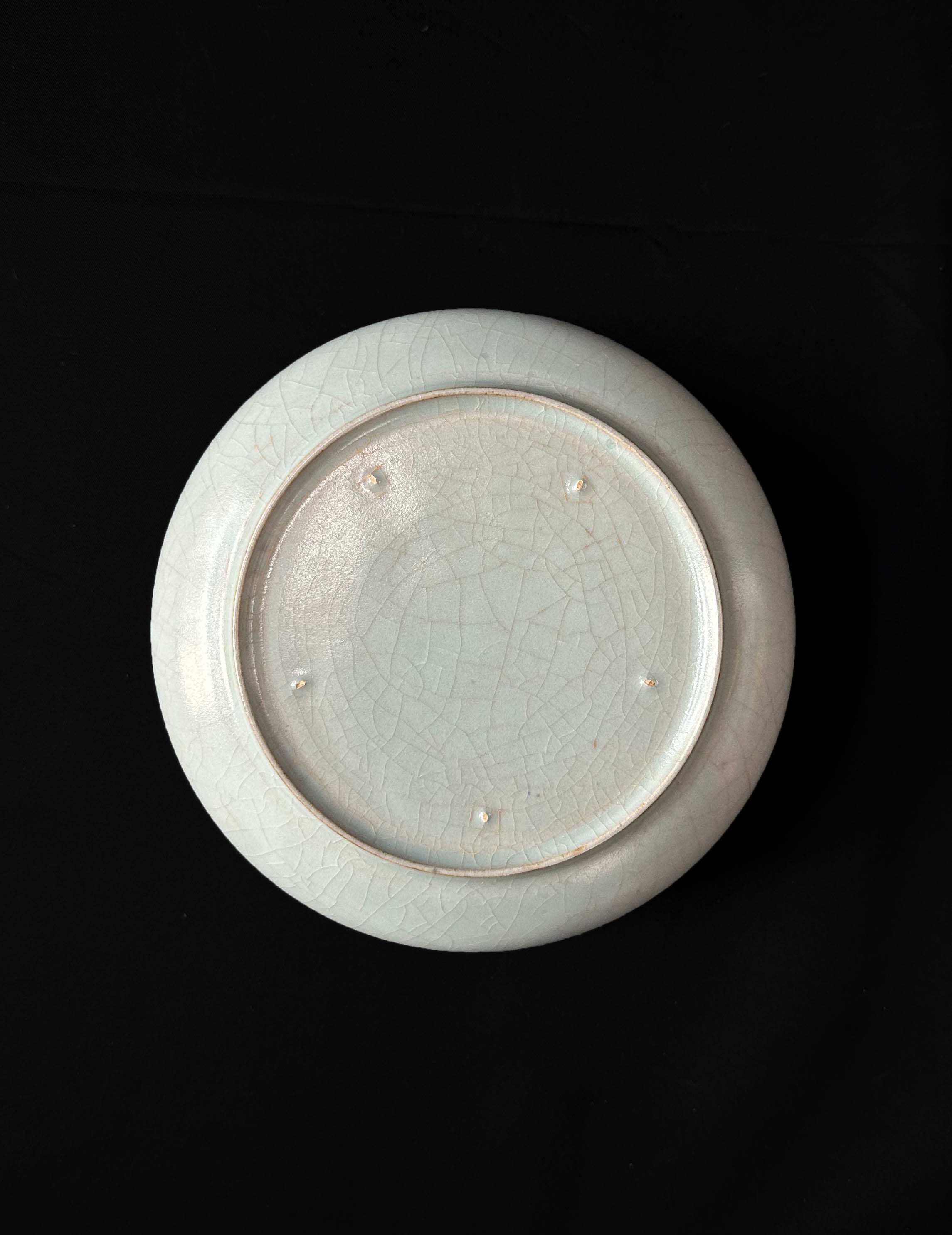 釉面布满细密的冰裂纹(开片),细碎的纹路在光线下更显温润细腻。仅供参考 自行甄别