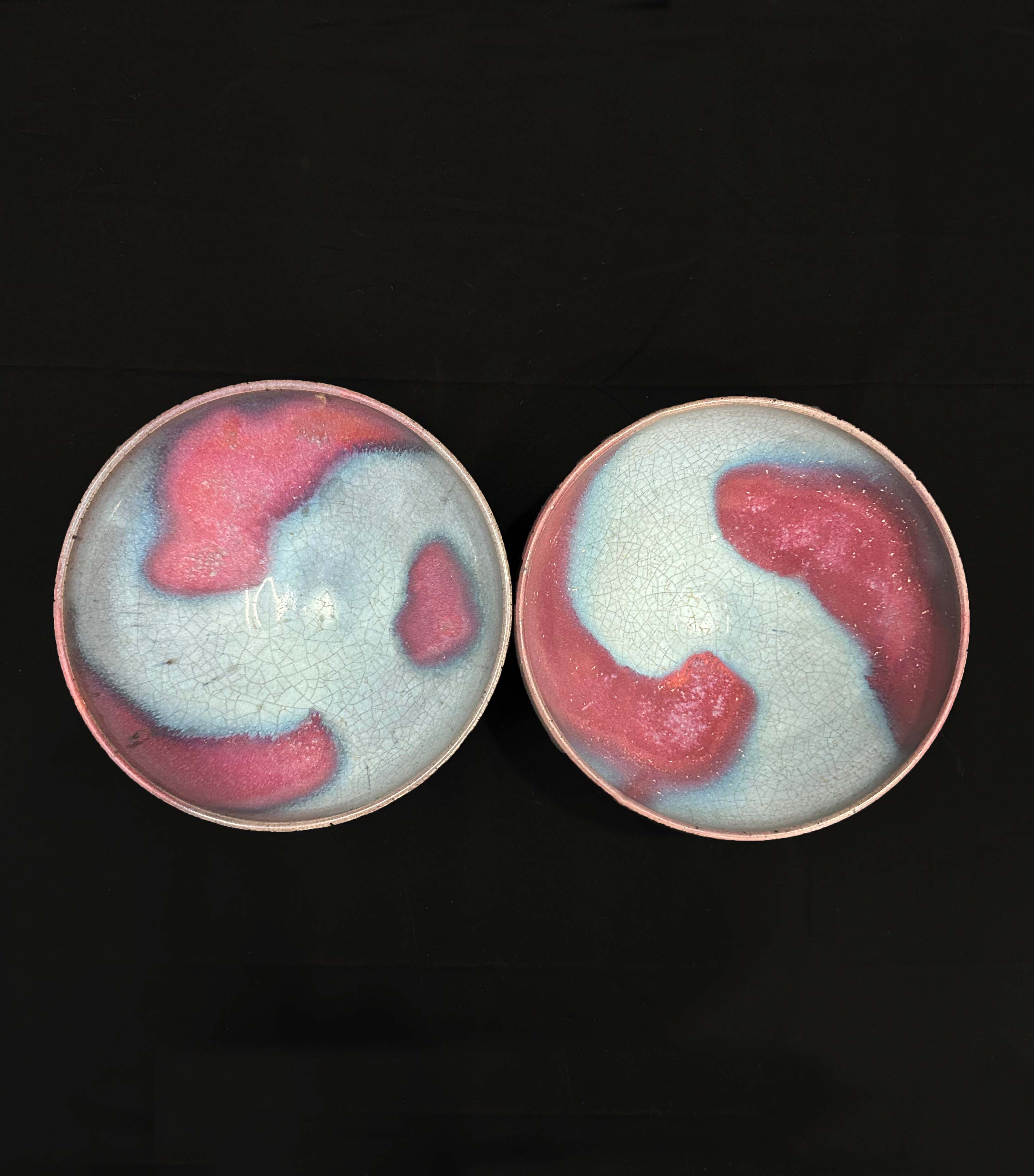 金代天蓝紫斑釉碗一对X2