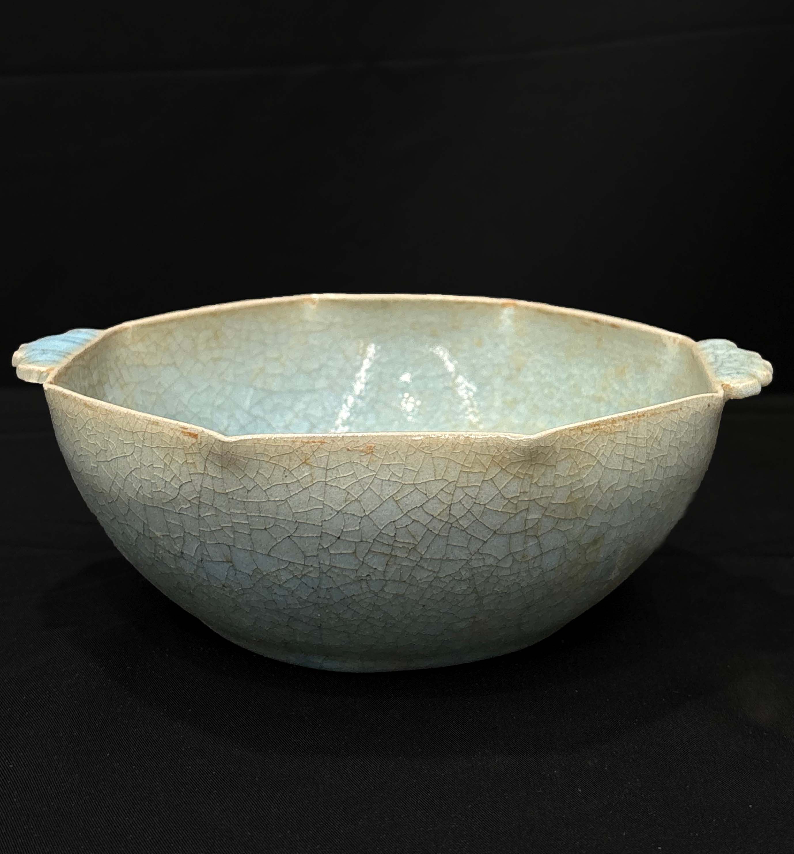 口径与腹深的比例协调,两侧的对称鋬耳不仅便于握持、倾倒,也丰富了器物的视觉层次。
