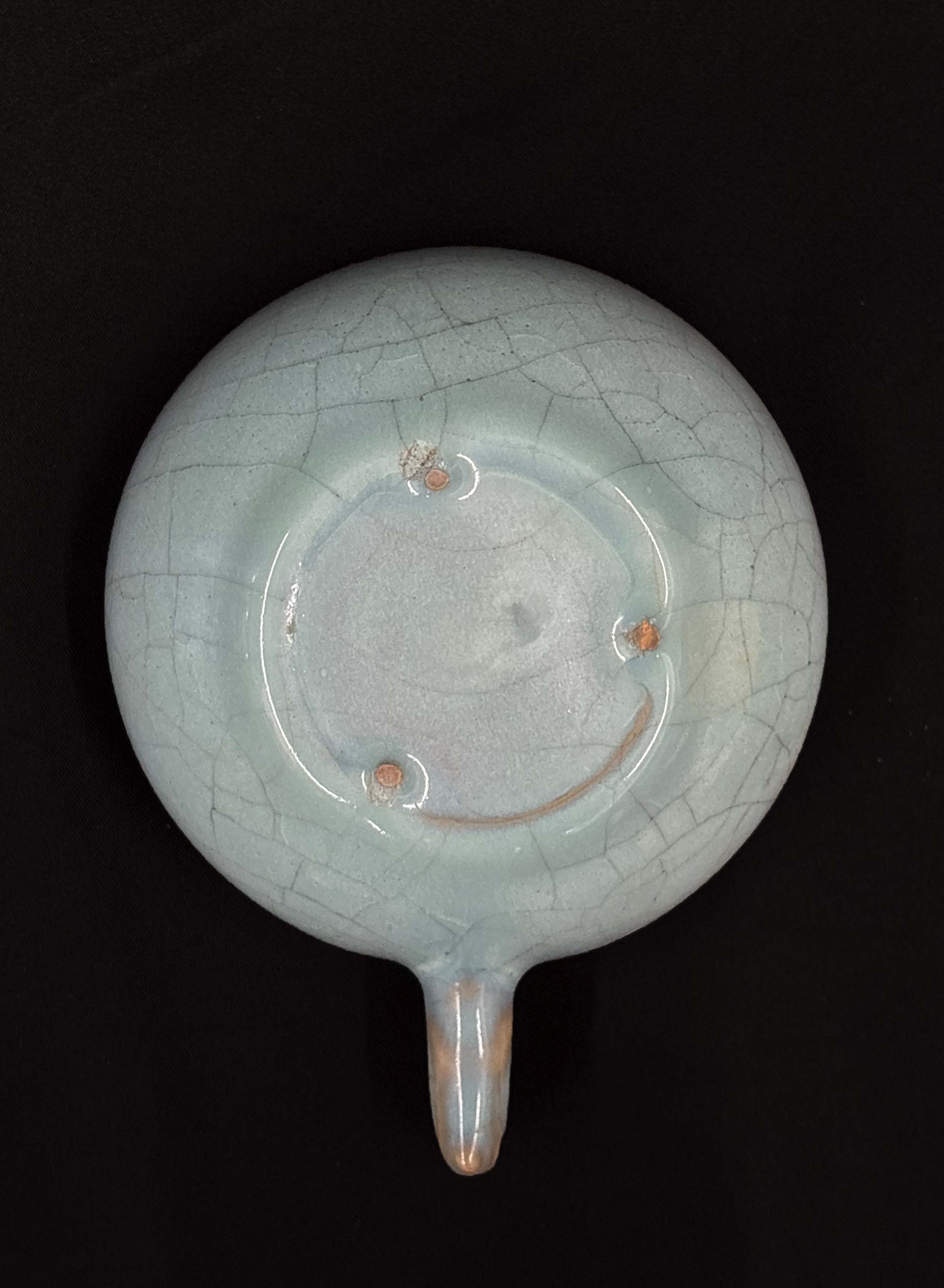 器身为敞口、弧腹、圈足的浅碗形,线条圆润流畅,一侧塑出立体的龙头形鋬耳(把手),龙头造型生动,既方便握持倾倒,又为素雅的器物增添了灵动的装饰性,龙的造型也蕴含吉祥寓意。