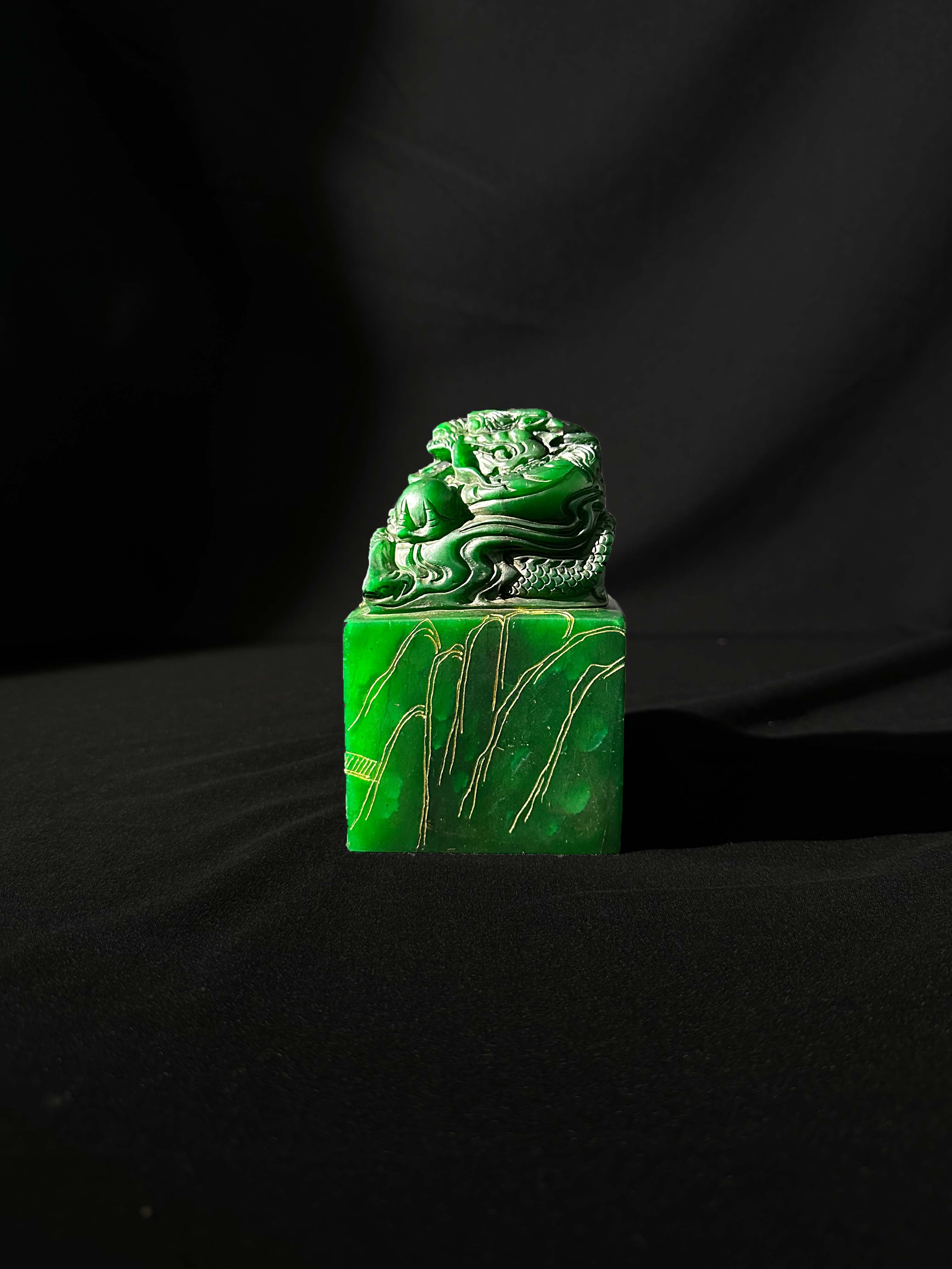 采用寿山蓝田石,色泽浓郁翠绿,质地细腻温润,是寿山石中的名贵品类,为印章创作提供了优质的物质基础。