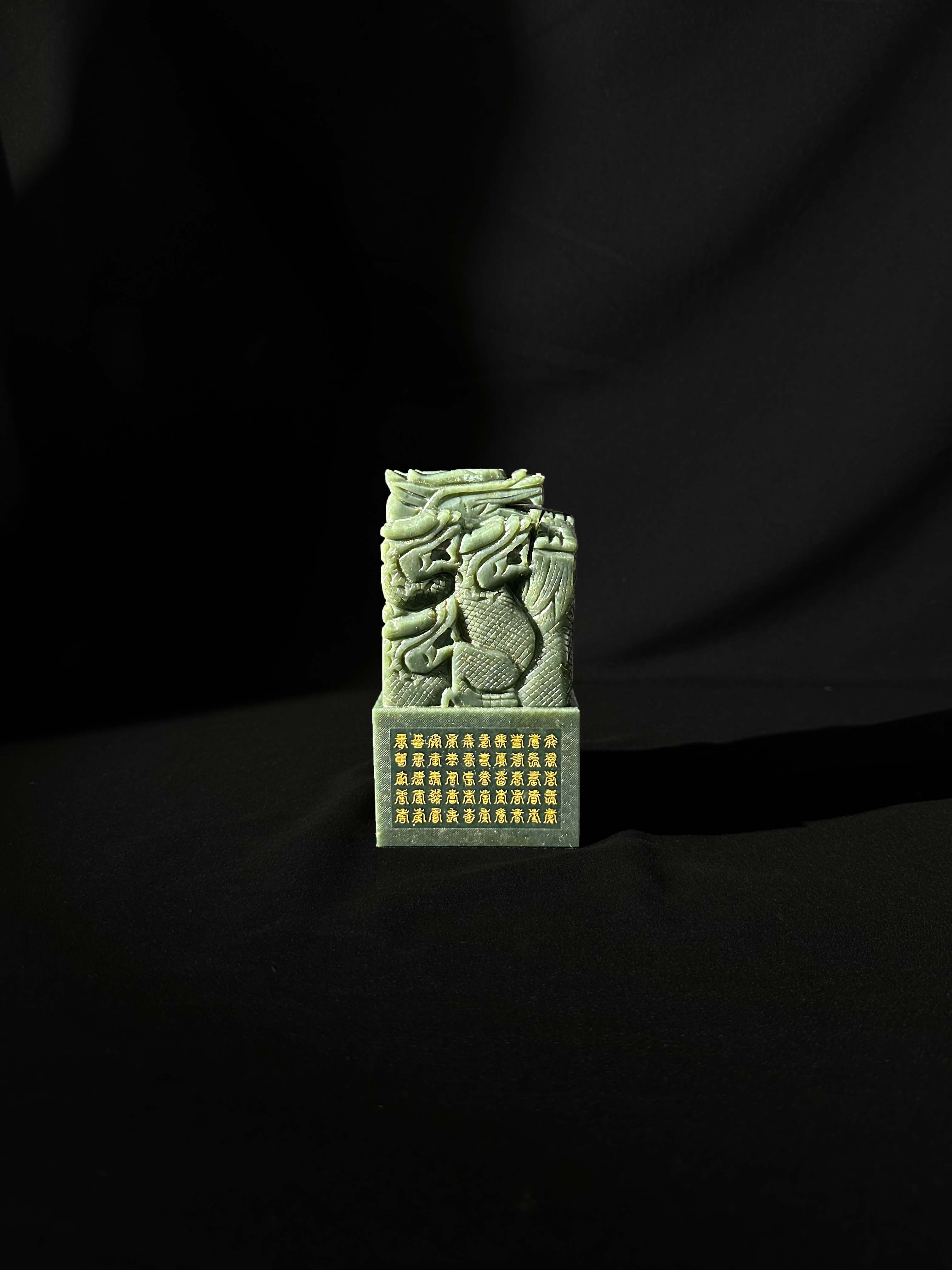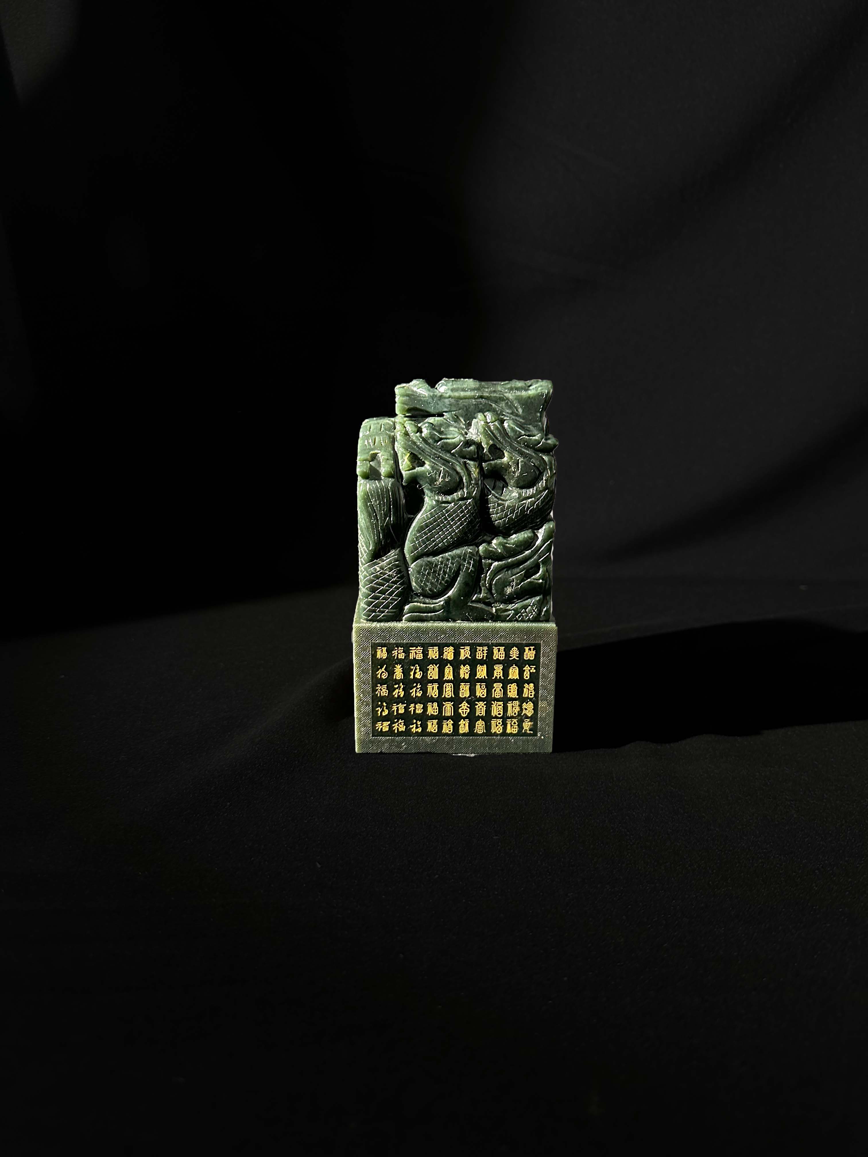 为实现中华民族伟大复兴 “中国梦” 而发行的《中国梦・九龙聚福宝玺》,由国家级玉雕大师仵海洲领衔创作,整方玉玺选材极为苛刻,选用上等的天然和田青玉,经过多道繁琐的工艺,精雕细琢,方成就此国家级的收藏艺术珍品。