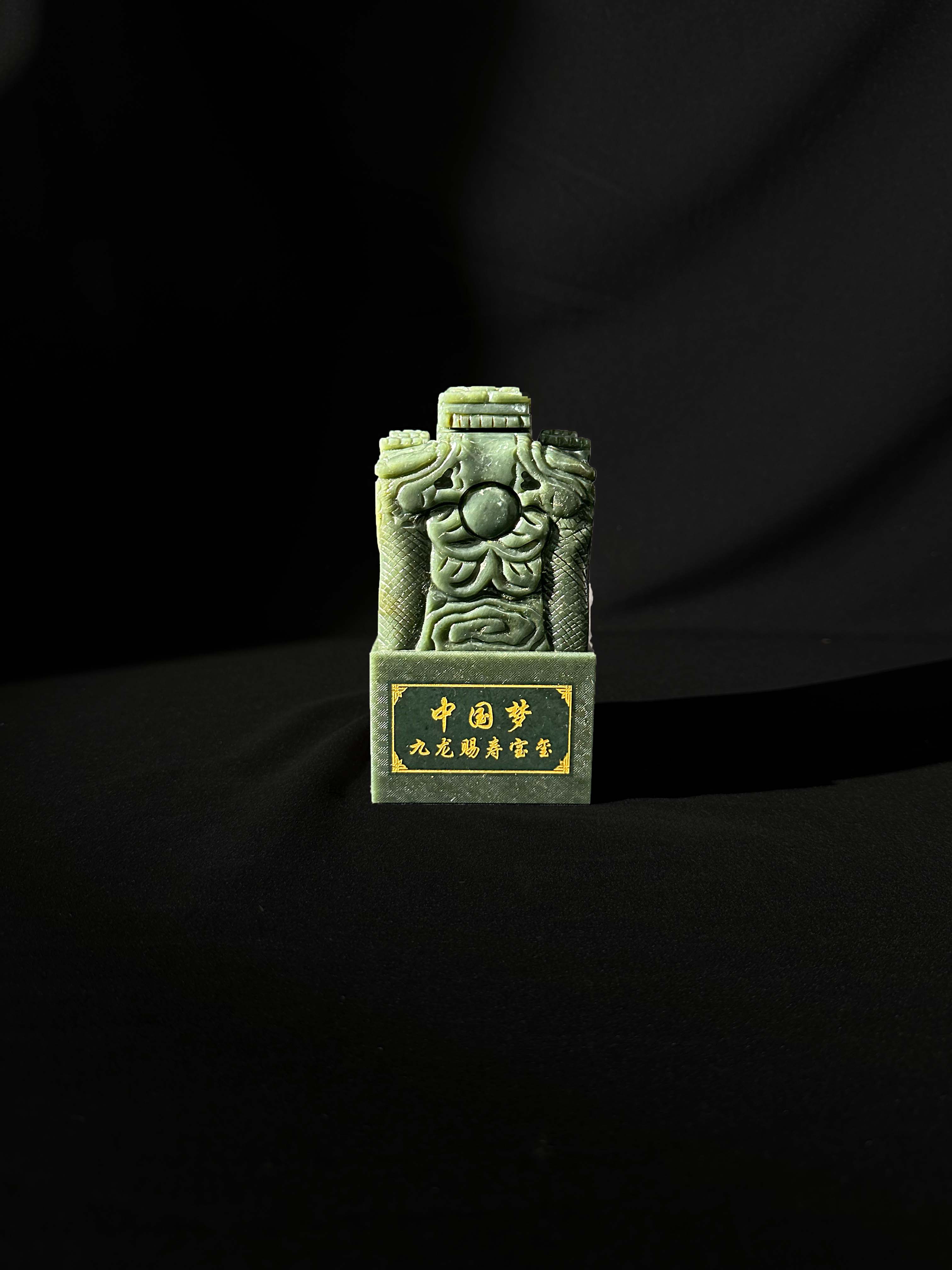 “九龙” 象征尊贵、祥瑞与权威,“赐寿” 寄托对长寿吉祥的祈愿。结合 “中国梦” 主题,既传承了玉玺作为权力与文化载体的历史内涵,又赋予时代精神,寓意国家繁荣、民族长寿安康的美好愿景。