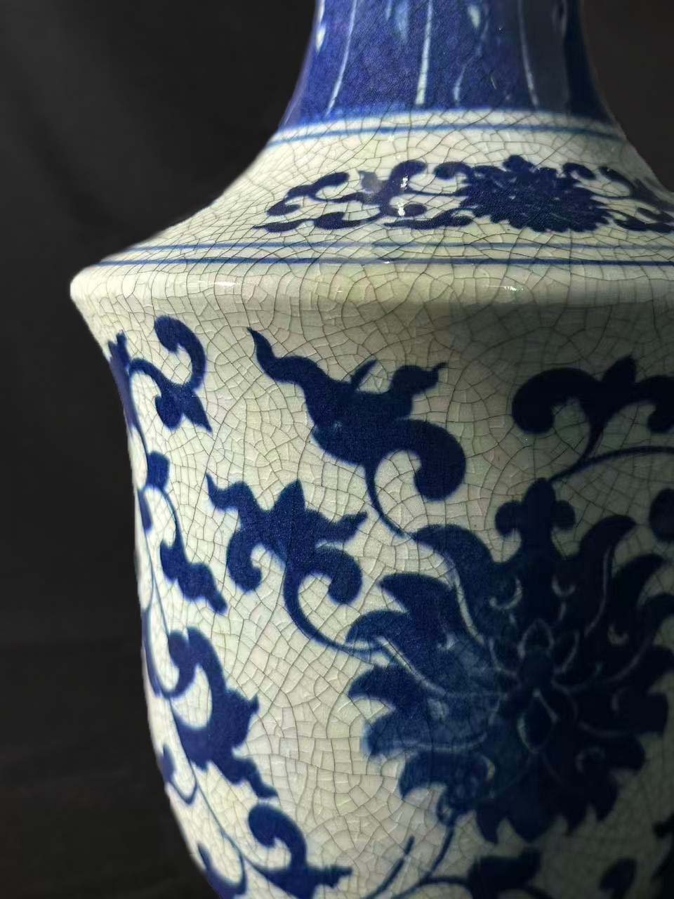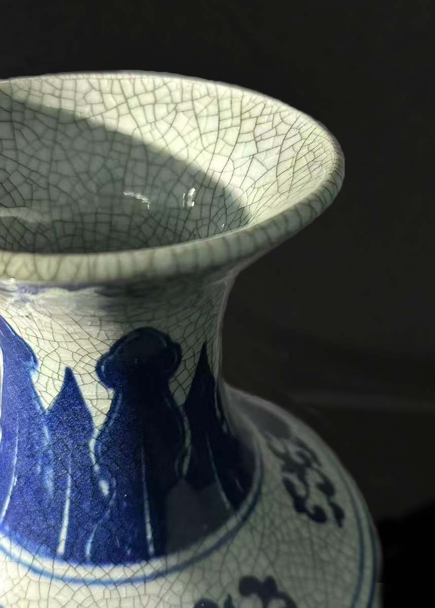 融合了传统官窑的古朴典雅与青花瓷器的清新雅致,开片的沧桑感与青花的细腻感形成对比,