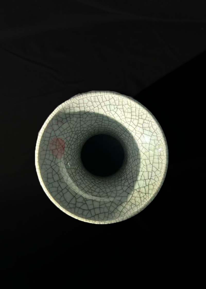 釉面布满自然的 “开片纹”,这是仿官窑瓷器的典型特征。开片是烧制后釉面因热胀冷缩产生的自然裂纹,经岁月或工艺处理后形成独特的纹理美感,此件开片纹路清晰且分布均匀,增添了古朴韵味。