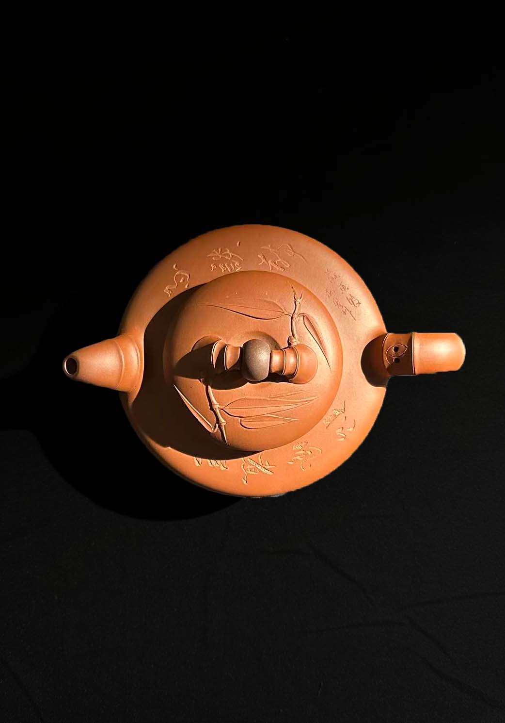 壶身扁圆,线条流畅;壶钮、壶把、壶流均以竹节为造型元素,呼应 “竹” 的清雅意象,同时暗合 “节节高升” 的吉祥寓意。