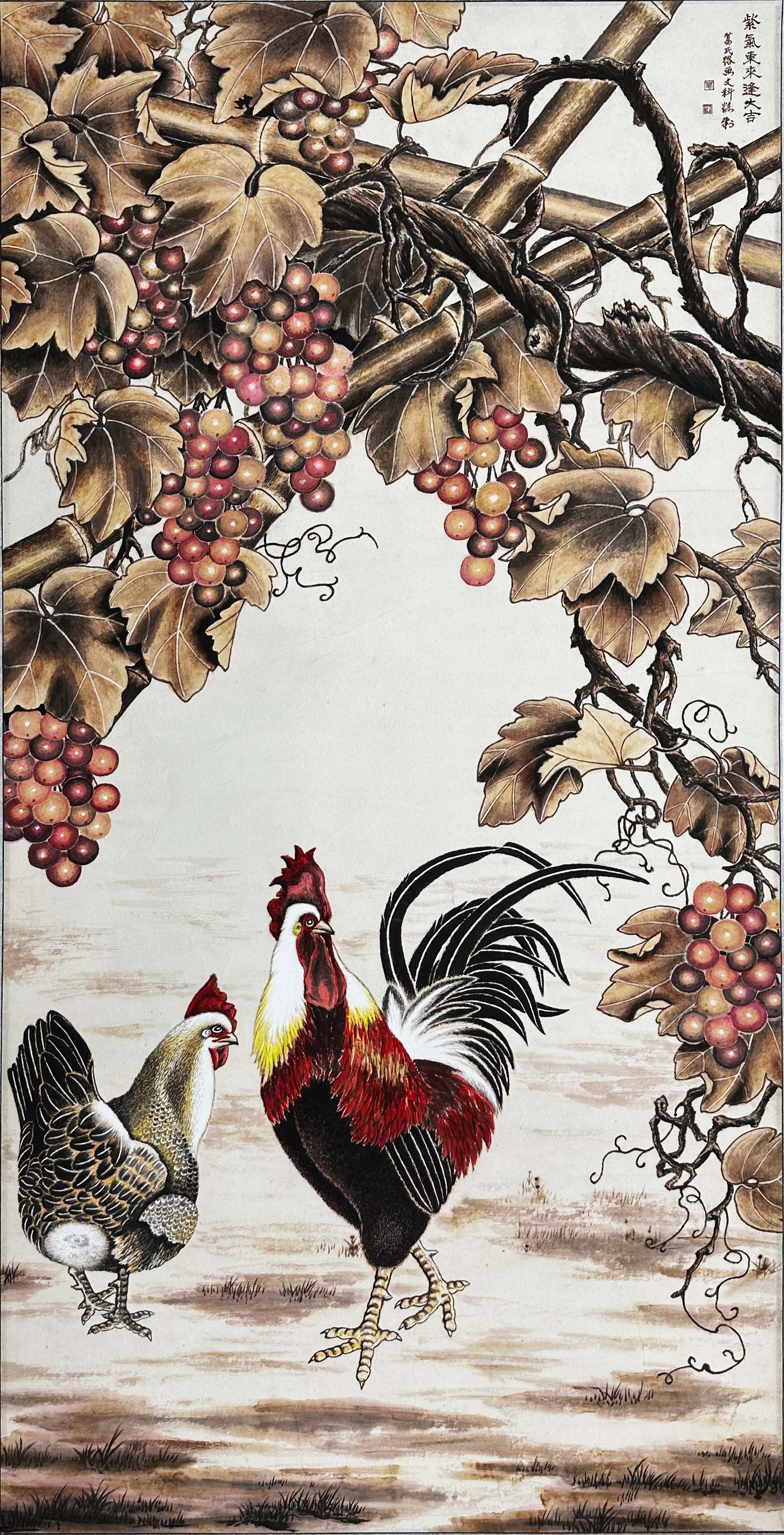 葛文科烙画《紫气东来逢大吉》